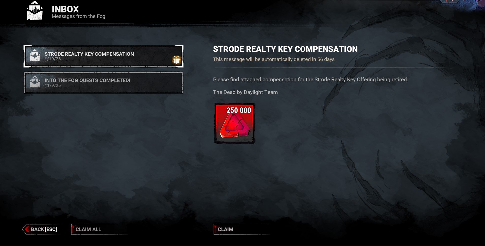 - "TheGrimoire" (1 million Bloodpoints) - Expired on September 29, 2025