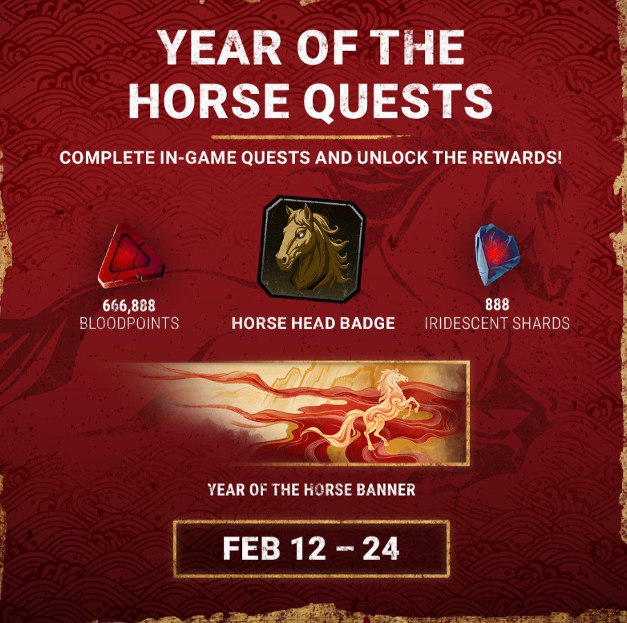 - "HAPPYHORSEYEAR2026" - Year of the Horse charm and 168,888 Bloodpoints (Released on Feb 16, 2026)